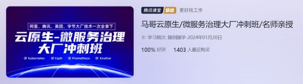 本套课程马哥云原生:微服务治理大厂冲刺班56期,腾讯、阿里、美团、字节大厂实战技术,课程官方售价9800元,谁掌握了微服务、云原生技术,就等于掌握了互联网IT核心技术,本套课程由杰哥和马哥主讲,课程共分为23个大的章节,文件大小共计164.56G。
