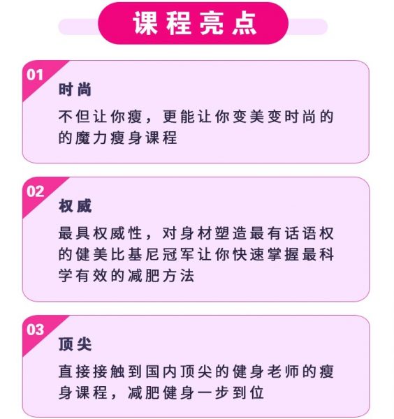 本套课程比基尼小姐教你如何修炼好身材,由粉红霏菲闫婕主讲,本套课程被称为是比基尼小姐冠军和她的身加养成小红书,想要维密身材坚持学习一门课程就足够了,解脱正在陷入减肥苦恼的你。本套课程共有20讲,文件大小共有1.1G,官方售价99元,现免费为大家分享,文章底部附下载链接。